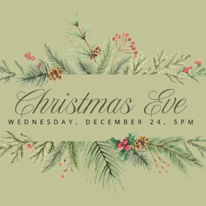 Join us as we celebrate Christmas on Wednesday, December 24, with a Christmas Eve Candlelight service beginning at 5pm. Bring your whole family – everyone who is visiting for the holidays. Invite your neighbors. Come be a part of this special service together in our Sanctuary.