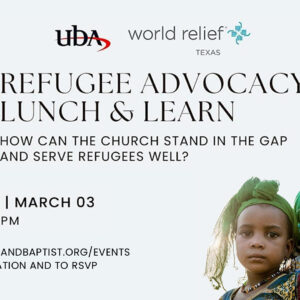 Refugee Advocacy Lunch & Learn is Tuesday, March 3, 11:30am, at the Union Baptist Association, 2916 West T.C. Jester Blvd, Houston. Join UBA, World Relief, and other local partners for a lunch and learn session on how churches can support refugees with a discussion of the question, “How can the church stand in the gap […]