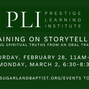 Location: Prestige Learning Institute | 6565 Rookin Street, Houston, TX 77074 You are invited to attend a PLI training on storytelling. Many of PLI’s clients come from an oral tradition, and we want to lean into ways they may better understand spiritual truths. The training will provide practical tips and techniques for using stories to share […]