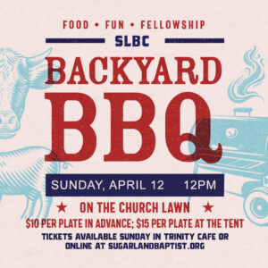 Join the fun, food, and fellowship at our church wide backyard BBQ on Sunday, April 12, outside on the East Lawn following church. Cost is $10 per plate through Friday, April 10, or $15 per plate payable at the tent. Free hotdogs and chips will be available for kids. Click here to make reservations online […]